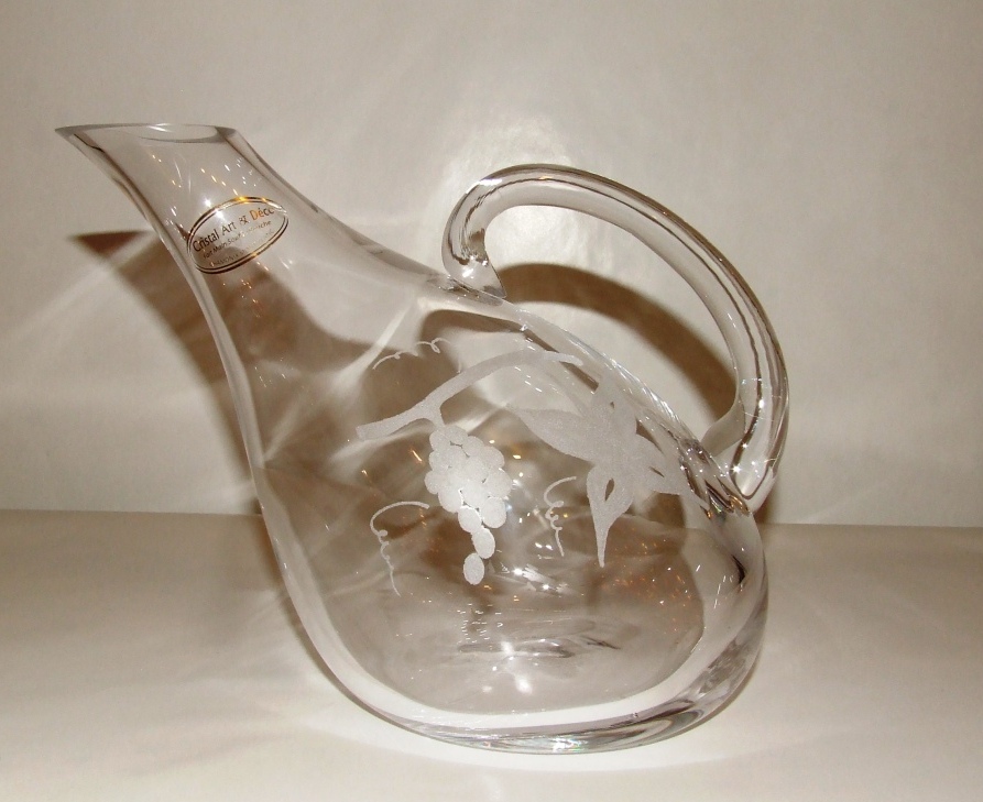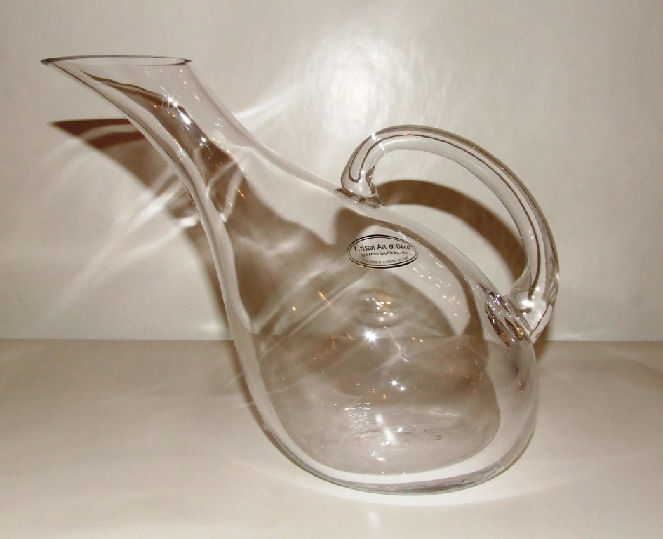 Très belle Carafe à décanter le vin en cristal avec anse entièrement réalisé par des maitres verriers.