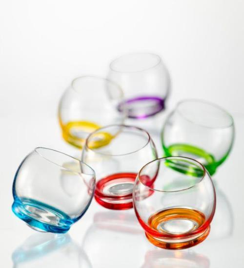 Ces verres aux fonds arrondis se balanceront d'un mouvement de culbuto pour apporter une touche originale et ludique lors de vos déjeuners ou apéritifs. Ils sont en cristallin de bohème et passent au lave-vaisselle