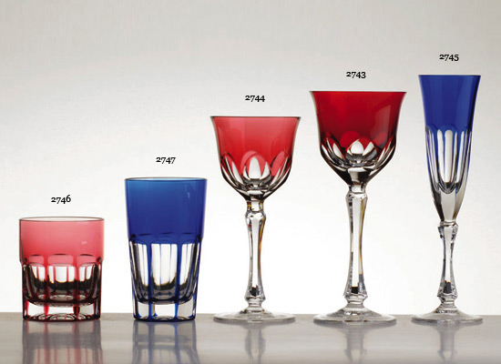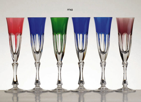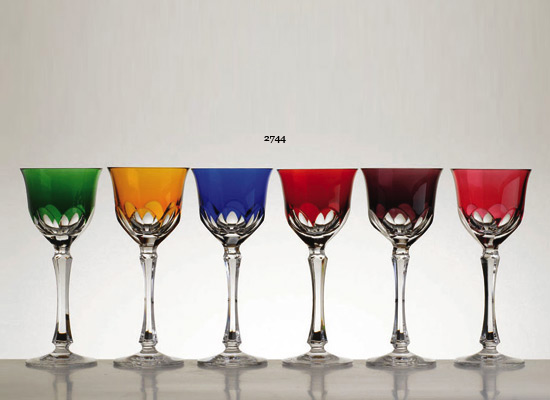 Verres à vin du Rhin en cristal très pur, couleur teinté dans la masse, , verres soufflé bouche et Côtes plates taillé main.