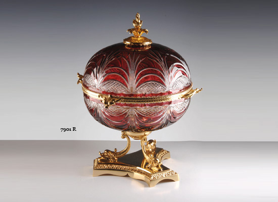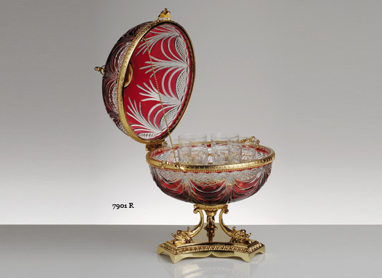 Très belle Cave à Whisky en cristal 24% plomb et bronze incrusté Or 24 carats.