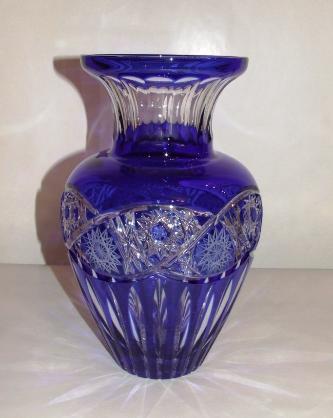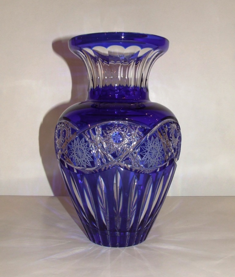 Vase bleu en cristal taillé