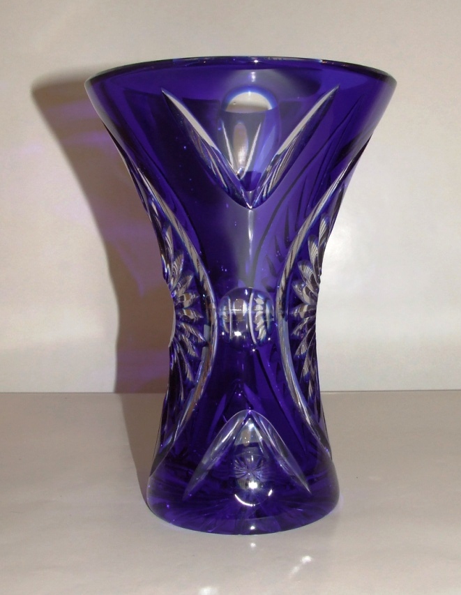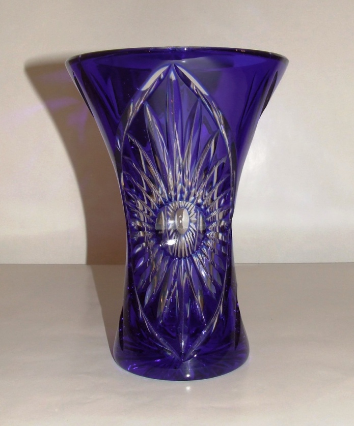 Vase bleu en cristal taillé forme tulipe