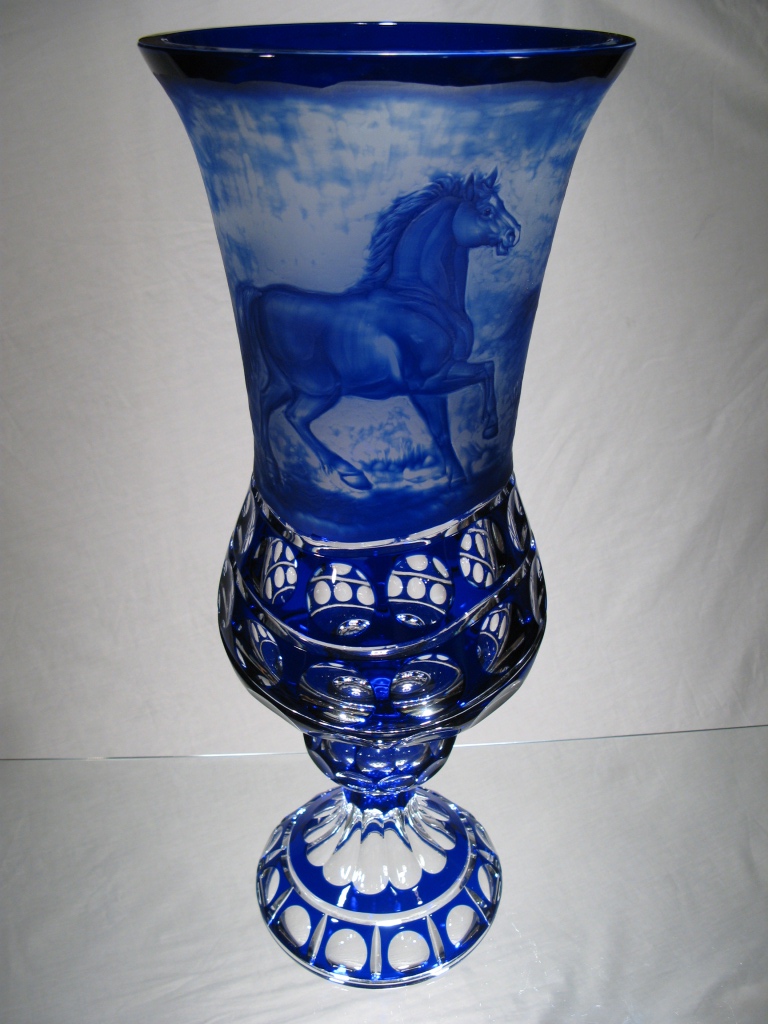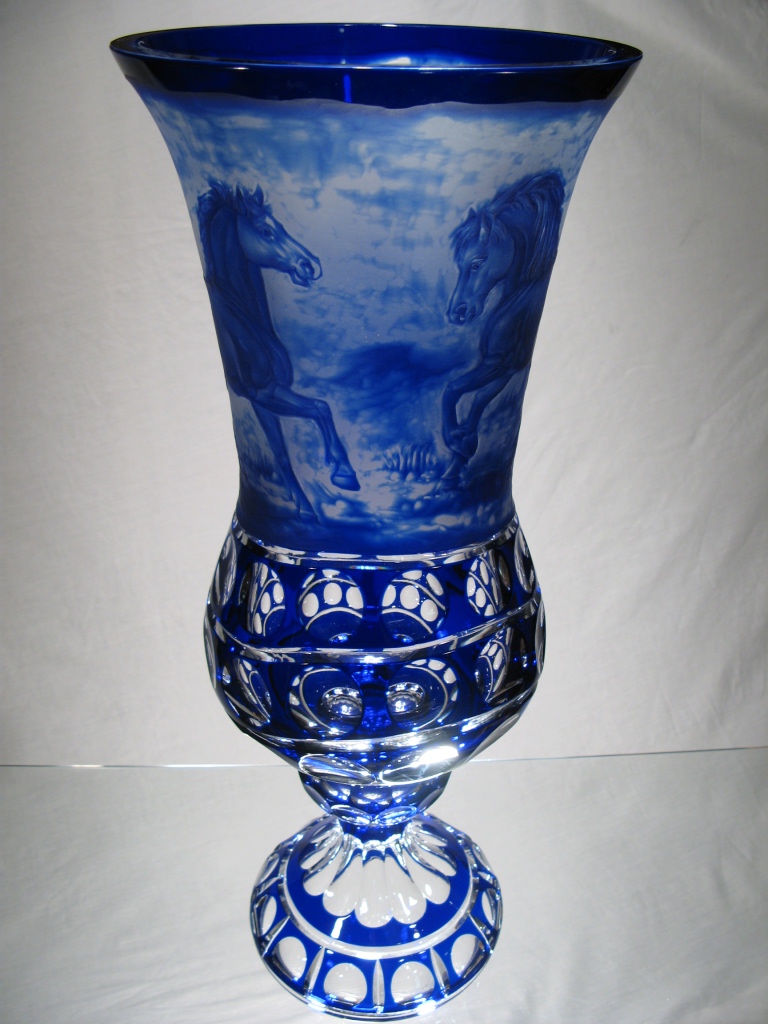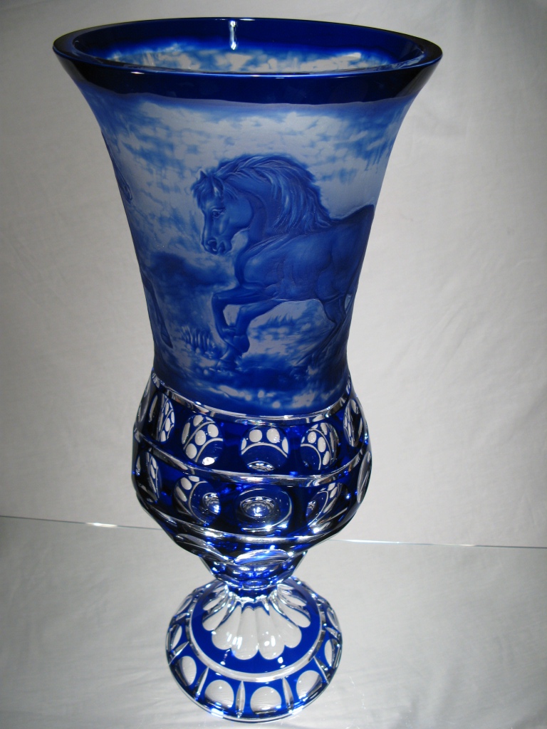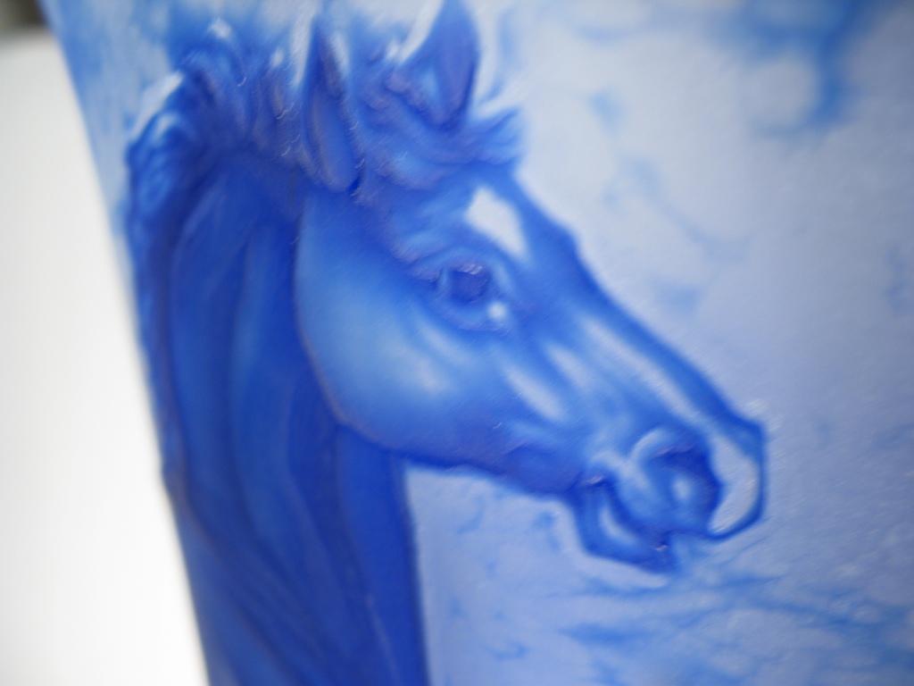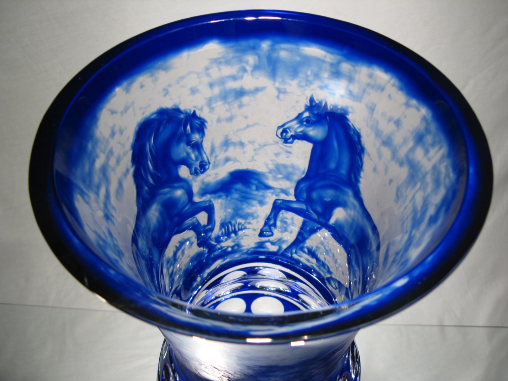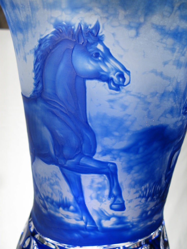 Dans la partie arrière du vase, la taille de rond a été polit et très beau effet de dédoublement des chevaux. (effet de loupe)