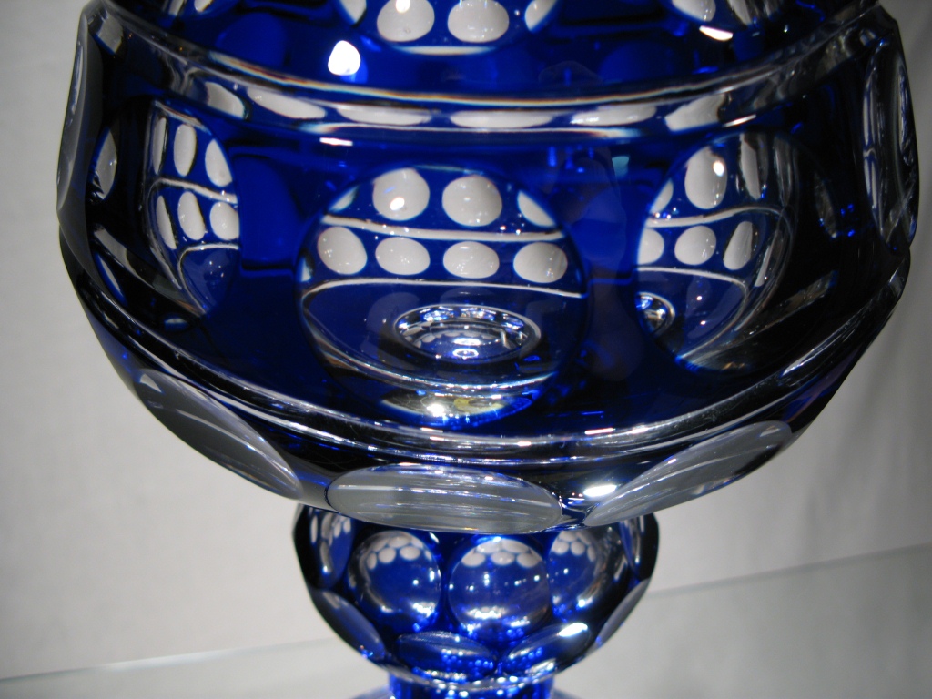 Cristal blanc transparent (1ère couche) et cristal de couleur bleu cobalte (2ème couche).