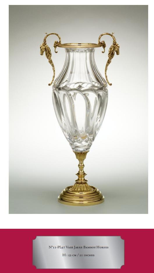 Cristal Bénito, magnifique Vase jarre bambou horses en véritable cristal supérieur à 24% plomb.