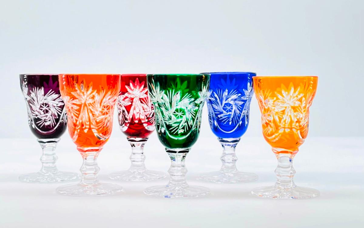 Très beaux petits verres à digestifs en cristal +24 % Plomb sur jambe courte.