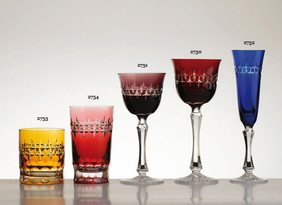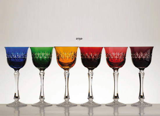 Verres à vin du Rhin en cristal très pur, couleur teinté dans la masse, , verres soufflé bouche, taillé et polit à la main.